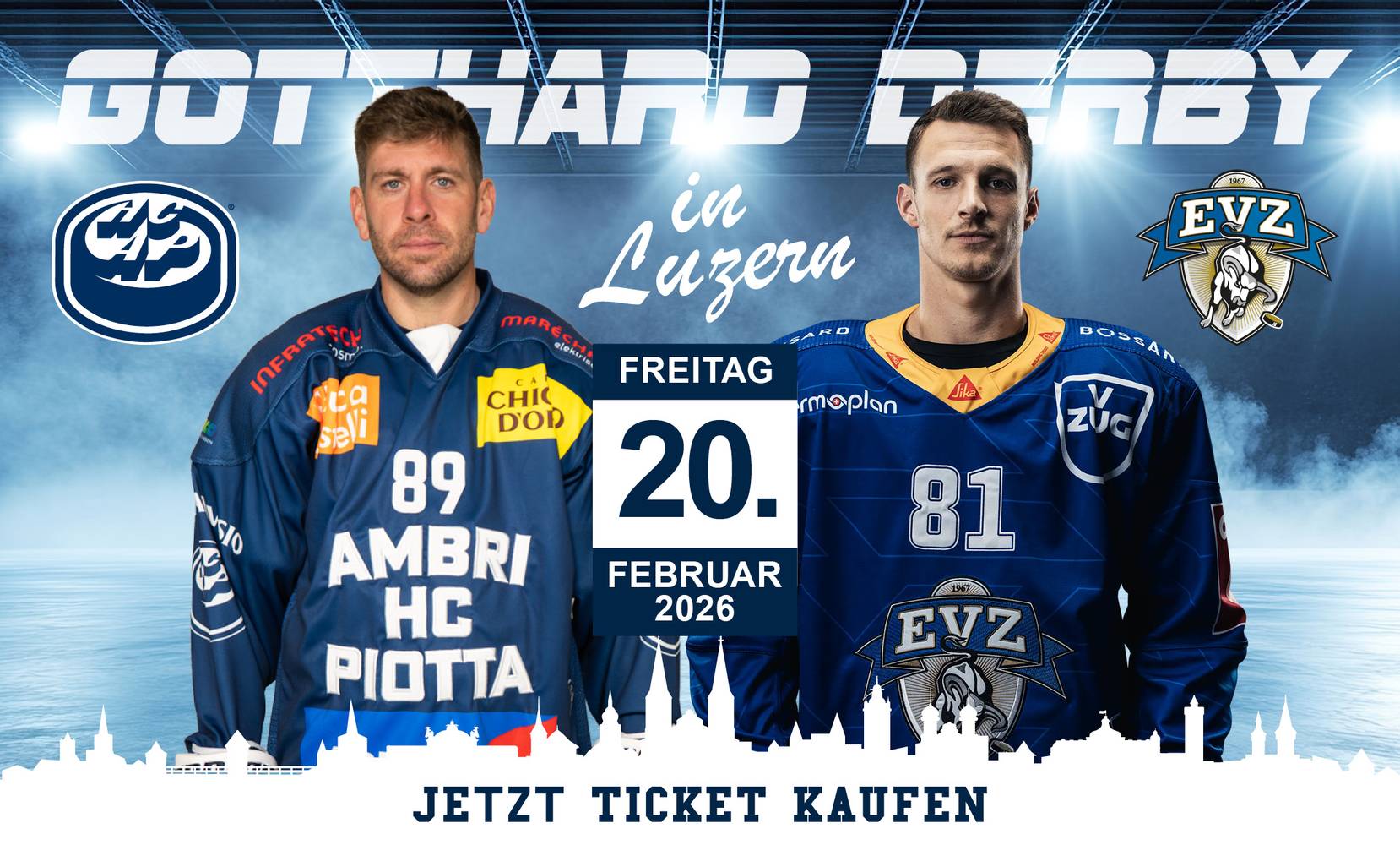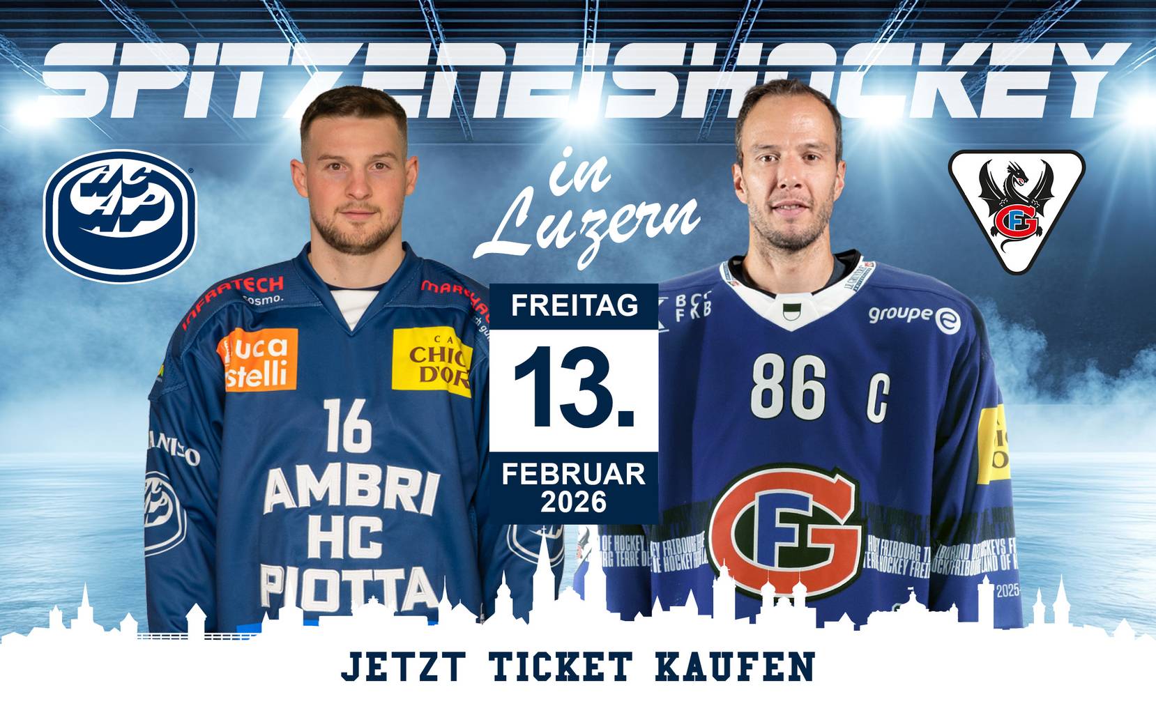 Am Freitag, 13. Februar 2026, treffen Ambri-Piotta und Fribourg-Gottéron aufeinander. Eine Woche später, am 20. Februar 2026, kommt es zum Gotthard-Derby zwischen Ambri-Piotta und dem EV Zug. Die Spiele beginnen jeweils um 19 Uhr im Eiszentrum Luzern. Tickets sind für die beiden Spiele online erhältlich. HCL-Aktivmitglieder erhalten ein Stehplatzticket für CHF 5.–