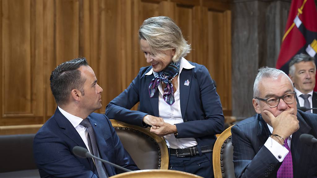 Die beiden Luzerner Ständeratsmitglieder, Andrea Gmür (Mitte) und Damian Müller (FDP), unterhalten sich an der Herbstsession 2022 im Ständerat. Beide kandidieren für eine weitere Legislatur. (Archivaufnahme)