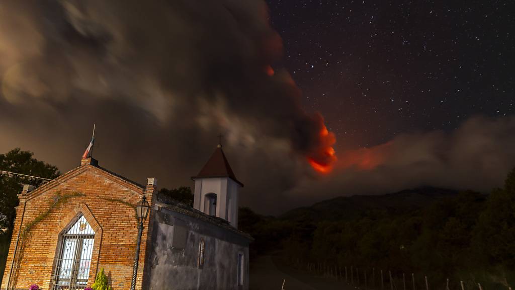 Am Sonntag hatte der mehr als 3300 Meter hohe Berg grosse Mengen glühende Lava in den Himmel gespuckt. Über dem Vulkan stand am Abend eine dicke Wolke aus Lava, magmatischen Gasen und Gestein bis in eine Höhe von 4,5 Kilometern.