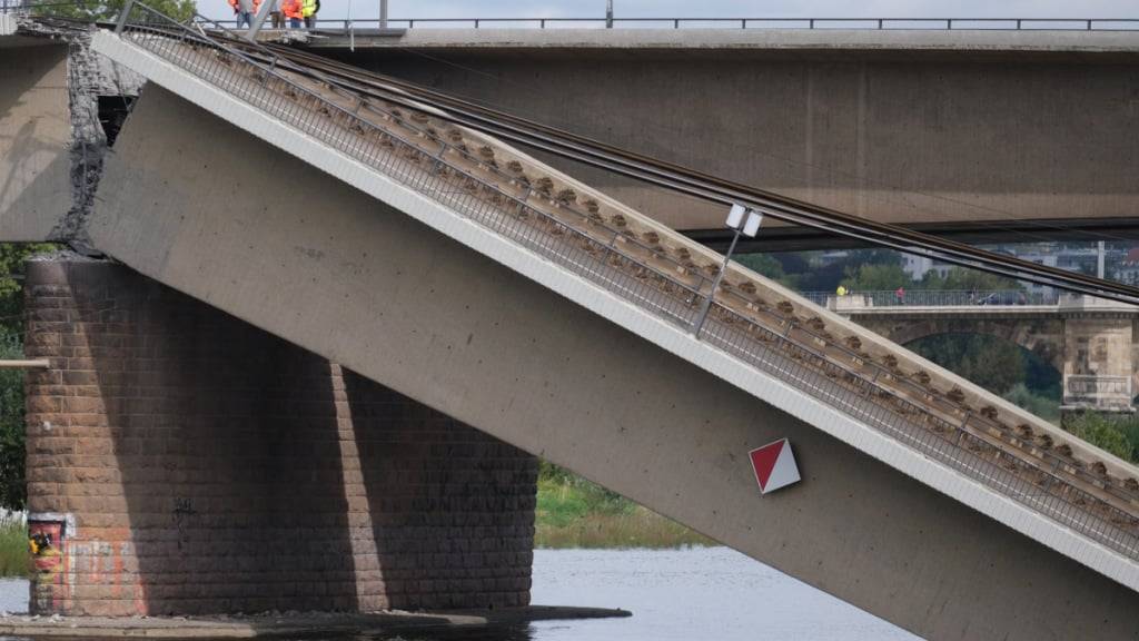In der Nacht zum Mittwoch war um 2.59 Uhr ein etwa 100 Meter langes Stück der Carolabrücke in die Elbe gestürzt, über das Strassenbahngleise sowie ein Fuss- und Radweg führten. Verletzt wurde niemand.