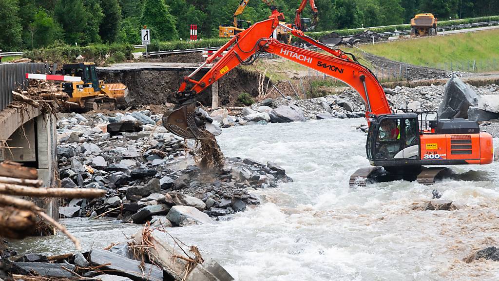 Ende vorletzter Woche hatte ein heftiges Unwetter im Bündner Südtal zu Überschwemmungen und Erdrutschen geführt. Die Autobahn A13 wurde vom Fluss Moesa auf einer Länge von 200 Metern weggerissen. Ein Murgang erfasste das Dorf Sorte der Gemeinde Lostallo und zerstörte drei Häuser, Strassen und andere Infrastruktur.
