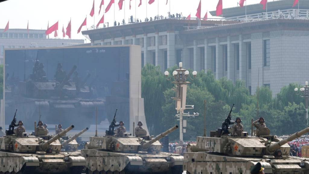 Xi rief zu Frieden auf und warnte zugleich vor neuen Gefahren. «Heute steht die Menschheit erneut vor der Wahl zwischen Frieden und Krieg, Dialog und Konfrontation, Win-Win und Nullsummenspiel», sagte er. China werde «fest auf der richtigen Seite der Geschichte» stehen, am Weg der friedlichen Entwicklung festhalten und mit anderen Völkern eine «Gemeinschaft mit geteilter Zukunft» aufbauen. Die Volksbefreiungsarmee müsse zu einer Weltklasse-Armee ausgebaut werden, um Souveränität und territoriale Integrität zu sichern und zugleich mehr zum Weltfrieden beizutragen.