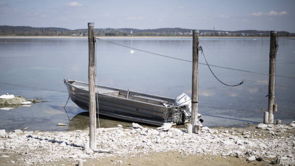 Ein Boot liegt in Ermatingen TG anfangs April im seichten Wasser des Untersees. (Archivbild)