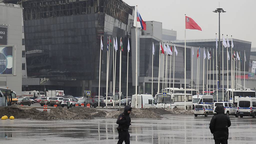 Die Lage an der Crocus City Hall war am Morgen unterdessen ruhig. Einsatzkräfte löschten Glutnester nach dem Grossbrand, wie die Feuerwehr mitteilte. Nach dem kompletten Löschen sollten die Trümmer des eingestürzten Daches der Konzerthalle beseitigt werden. Polizei, Nationalgarde und Ermittlungskomitee nahmen die Schäden auf und sicherten Spuren.