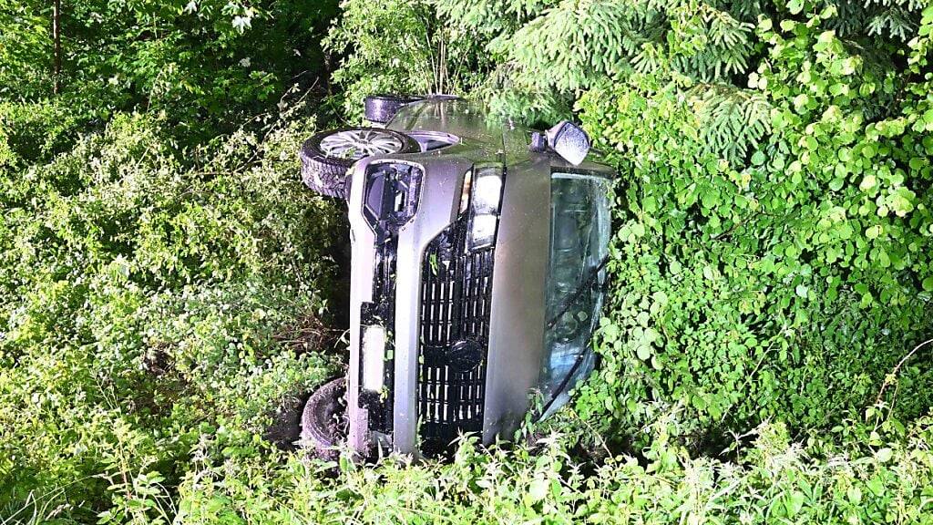 Ein Fahrzeug hat sich am Freitag in Rain LU wegen Aquaplanings überschlagen und ist in einem Gebüsch gelandet. Der Lenker wurde zur Kontrolle ins Spital gefahren.