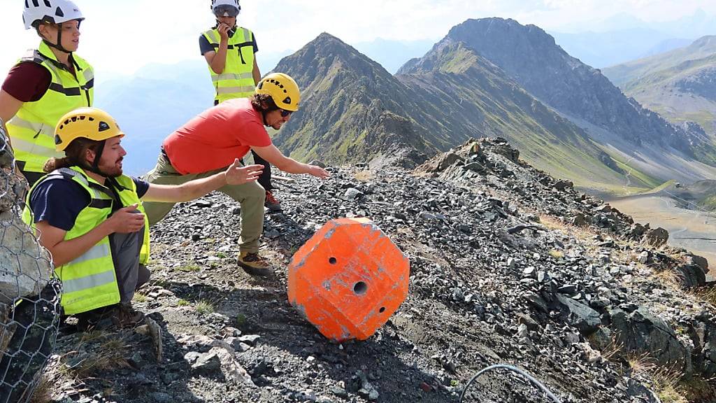 Mit dem Versuch wollen die Forschenden um den SLF-Steinschlagexperten Joël Borner herausfinden, wie Steine und Blöcke auf rauem Untergrund herabstürzen, wie sie sich bewegen und wie sie von Hindernissen abgelenkt werden. Zuvor wurden bereits ähnliche Versuche auf anderen Bodentypen durchgeführt.