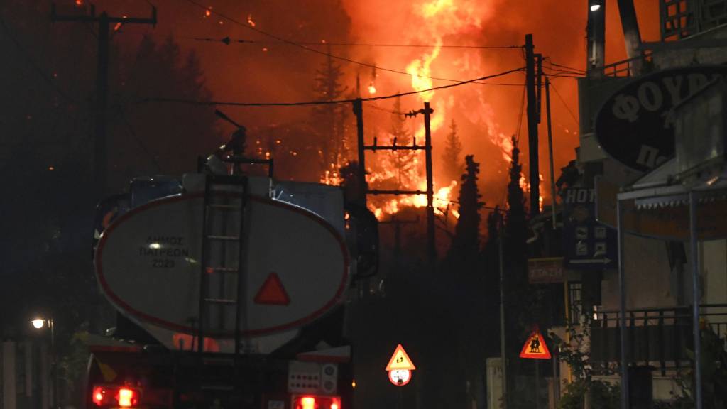 Besonders gefährlich sei die Lage derzeit nahe der westgriechischen Stadt Patras. Dort lodern zwei grosse Brände. Auch in der Region Preveza im Nordwesten des Landes sowie auf den Inseln Zakynthos und Chios brennt es grossflächig. Zudem gebe es unzählige Glutnester, die sich mit dem Wind binnen Minuten in neue Brände verwandeln, teile die Feuerwehr mit.