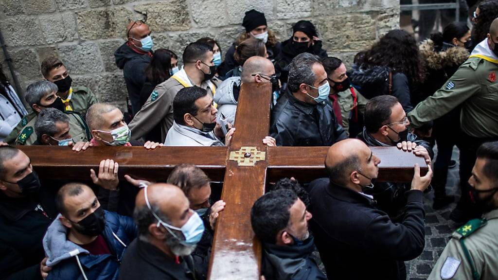 Sie forderten ausserdem die Aufnahme von Verhandlungen mit internationaler Hilfe zur «Beendigung und Überwindung des gegenwärtigen Gewaltkreislaufs». Nur so könne «eine umfassende Lösung für einen gerechten und dauerhaften Frieden hier in dem Land vorangebracht werden, in dem unser Herr sein Leben geopfert hat». Am Karfreitag tragen Christen in Jerusalem traditionell bei einer Prozession auf der Via Dolorosa (deutsch: Leidensweg) Kreuze aus Holz, während sie zur Grabeskirche gehen, wo Jesus nach dem Glauben vieler Christen gekreuzigt und begraben wurde und von den Toten auferstanden ist. In diesem Jahr fällt Ostern mit dem muslimischen Fastenmonat Ramadan zusammen.