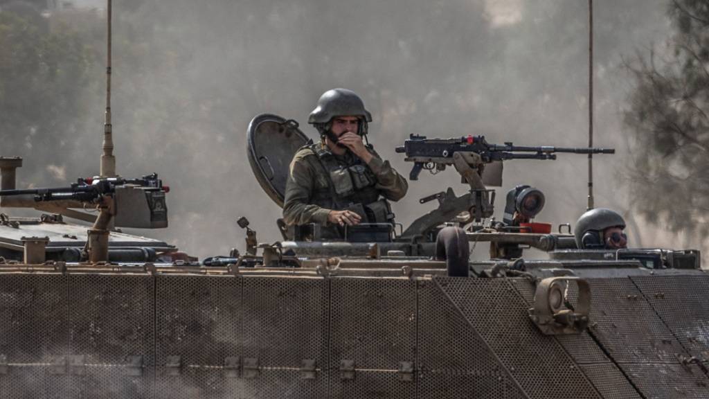 Ein israelischer gepanzerter Mannschaftswagen fährt an der Grenze zwischen Israel und Gaza. Foto: Ilia Yefimovich/dpa