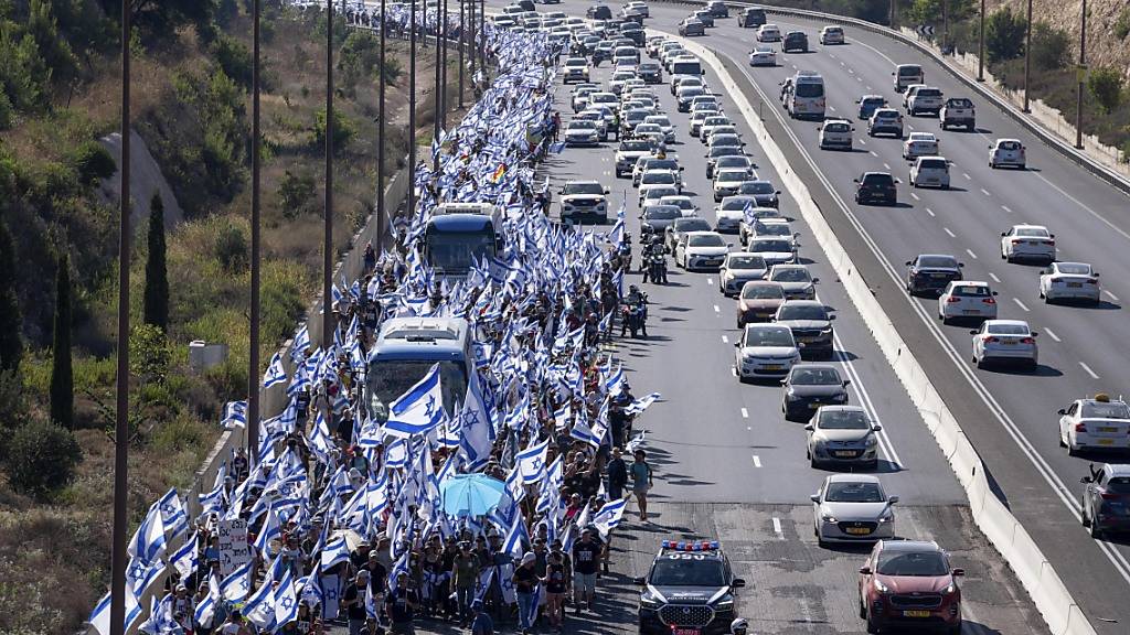 Gegen das umfassende Vorhaben gehen seit mehr als einem halben Jahr regelmässig Tausende Israelis auf die Strassen. Für Samstag sind erneut mehrere Kundgebungen und Störaktionen geplant. In Jerusalem wird zudem die Ankunft eines Protestmarschs erwartet. Hunderte Menschen waren am Dienstagabend zu der 70-Kilometer-Wanderung von Tel Aviv nach Jerusalem aufgebrochen. Am Freitag waren es bereits mehr als 10 000 Teilnehmer. Am Sonntagabend soll es zudem eine Demonstration von Befürwortern der Reform in Tel Aviv geben.