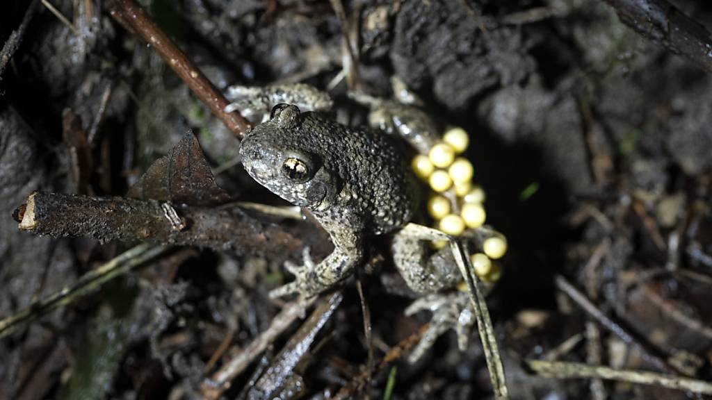 Laut WWF wird die Geburtshelferkröte auch «Glögglifrosch» genannt. Anders als andere einheimische Froschlurch-Arten, paare sie sich an Land und lege ihre Eier nicht im Wasser ab. Die Brutpflege betreibe das Männchen.