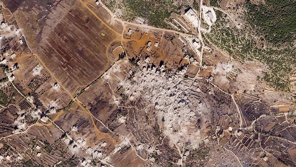 HANDOUT - Ein Dorf im Südlibanon. Foto: Planet Labs PBC/Planet Labs PBC/AP/dpa - ACHTUNG: Nur zur redaktionellen Verwendung und nur mit vollständiger Nennung des vorstehenden Credits