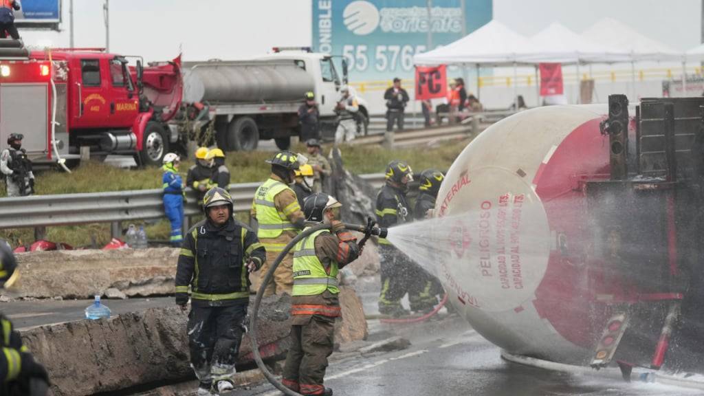 Der Lkw mit einem Fassungsvermögen von 49.500 Litern kippte unter einer Autobahnüberführung um, bevor es zur Explosion kam, wie die Bürgermeisterin der mexikanischen Hauptstadt, Clara Brugada, mitteilte.