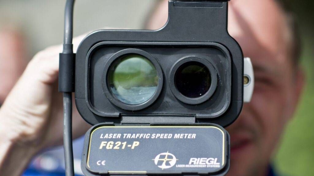 Lasergerät der Polizei bei einer Geschwindigkeitskontrolle. (Archivbild)