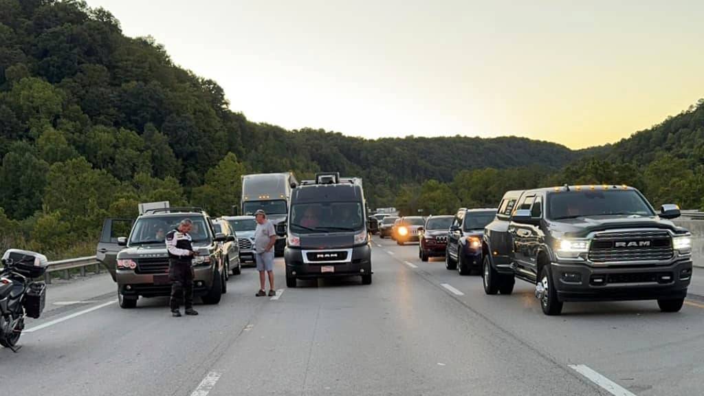 HANDOUT - Auf der Interstate 75 Autobahn im US-Bundesstaat Kentucky fielen die Schüsse. Foto: Camden Mink/Mount Vernon Fire Department/AP/dpa - ACHTUNG: Nur zur redaktionellen Verwendung und nur mit vollständiger Nennung des vorstehenden Credits
