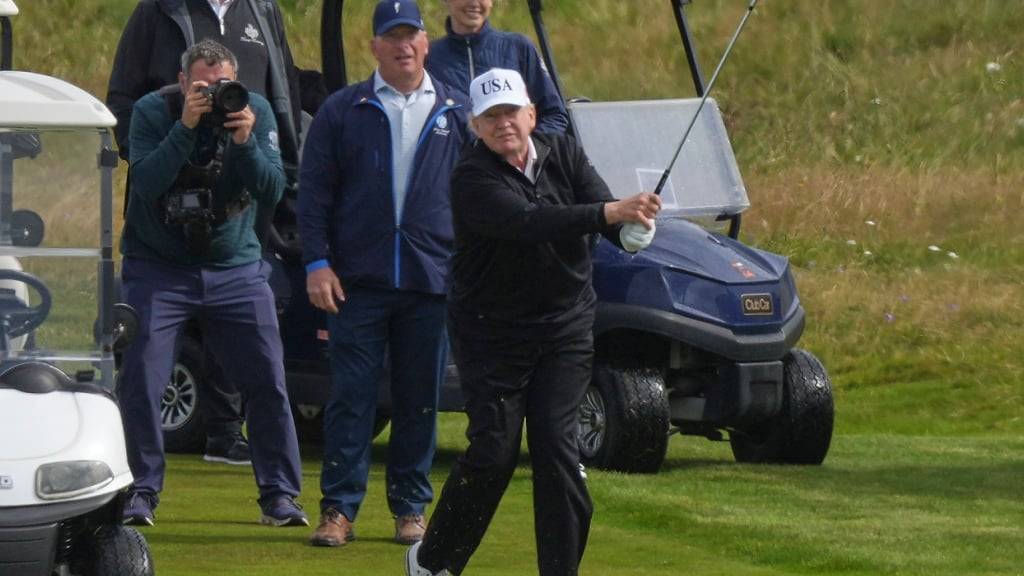 Mit USA-Kappe: Trump spielt in Schottland erst einmal Golf