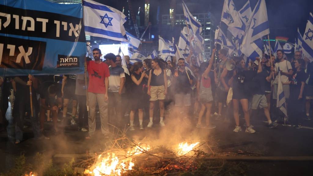 Auf der Kundgebung in Tel Aviv, an der nach Schätzung des Senders Kan zwischen 20.000 und 30.000 Menschen teilnahmen, zündeten Demonstranten Feuer auf mehreren blockierten Strassen an. Die Polizei hatte sichtlich Mühe, wieder Ordnung herzustellen. Mehrere Menschen wurden festgenommen.