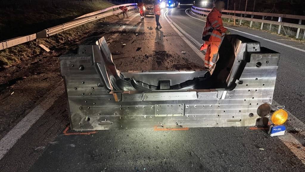 Ein zwölf Tonnen schweres Stahlelement ist in der Nacht auf Donnerstag in Splügen von einem Sattelschlepper auf die Autostrasse A13 gefallen. Die Strasse wurde gemäss der Polizei stark beschädigt, konnte aber noch in der Nacht wieder repariert werden.