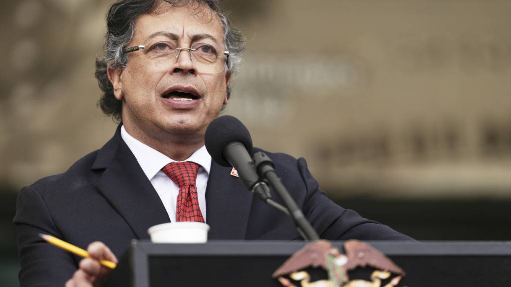 ARCHIV - Der kolumbianische Präsident Gustavo Petro spricht während einer militärischen Zeremonie in Bogota, Kolumbien. Foto: Ivan Valencia/AP/dpa