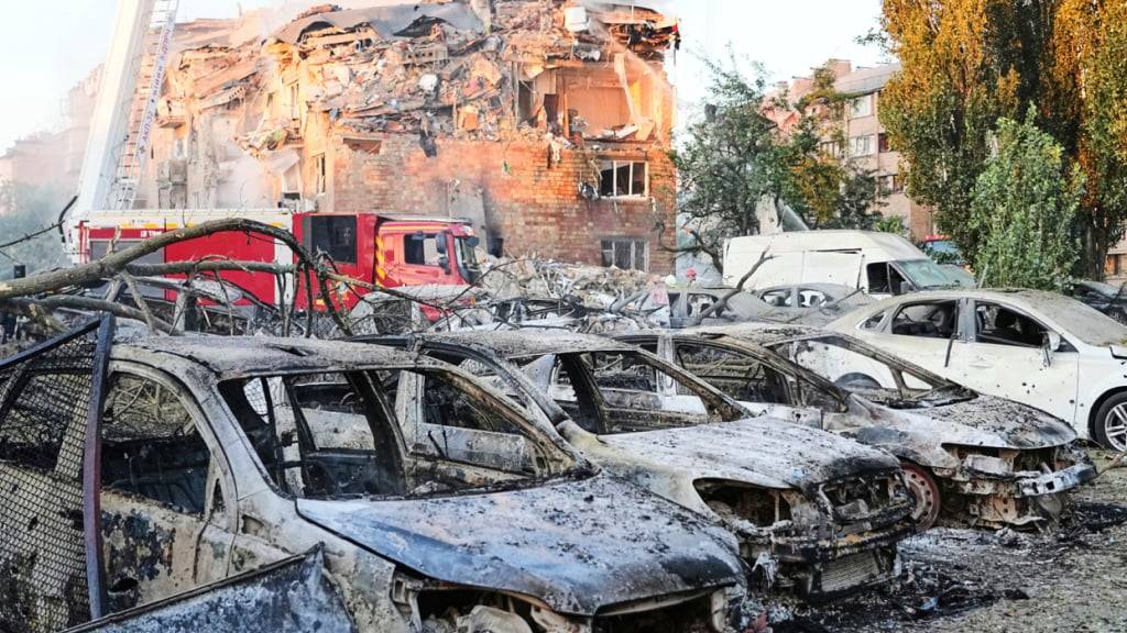 «Heute Nacht wird Kiew vom russischen Terrorstaat massiv angegriffen», schrieb Kiews Militärgouverneur Tymur Tkatschenko auf Telegram. Auf Videos und Fotos, die Behörden veröffentlichten, waren schwere Verwüstungen in einem teils eingestürzten Wohnhaus und ausgebrannte Autos zu sehen. Es gab Berichte über zahlreiche Schäden und mehrere Brände.