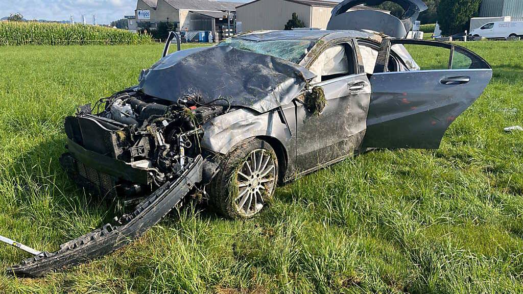 Das Auto kam den Angaben zufolge schliesslich im Wiesland auf den Rädern zum Stillstand.
