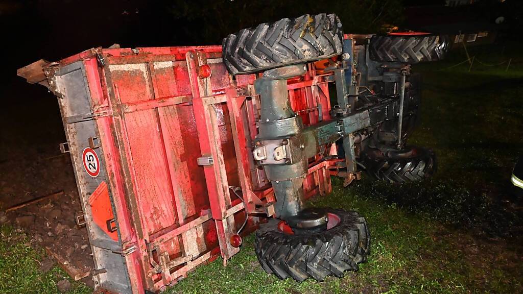 Ein 56-jähriger Mann hat sich am Sonntag beim Ausführen von Mist auf einer Wiese in Oberrindal SG schwer verletzt. Er geriet unter sein landwirtschaftliches Fahrzeug, als dieses zur Seite kippte.
