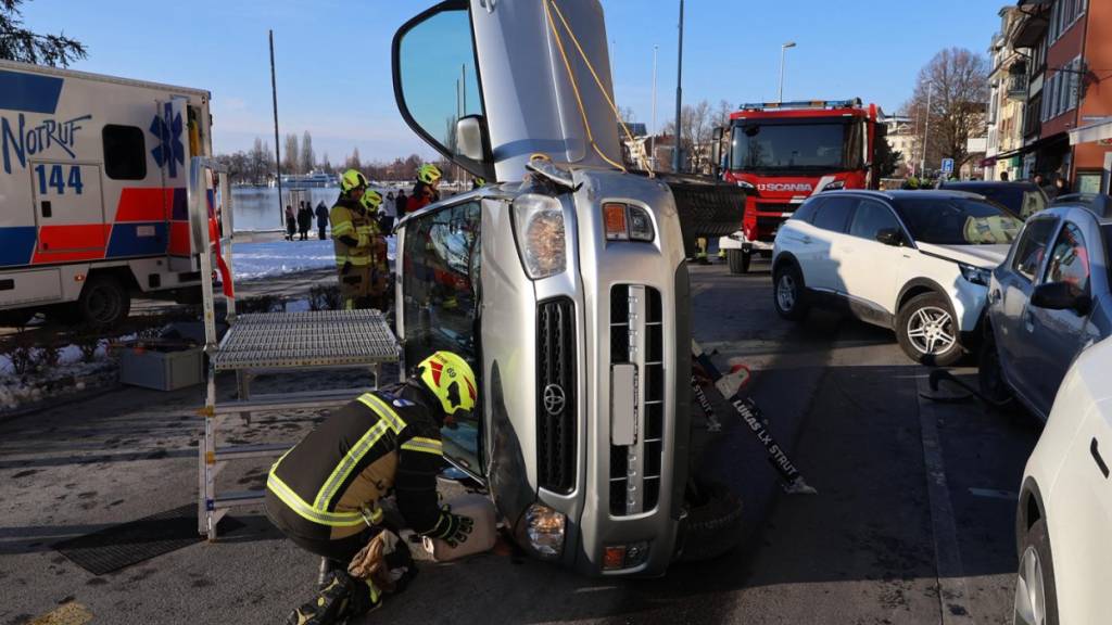Eine 85-jährige Autofahrerin hat sich am Mittwochnachmittag bei einem Unfall in Zug erheblich verletzt. Ihr Fahrzeug kippte bei dem Selbstunfall.