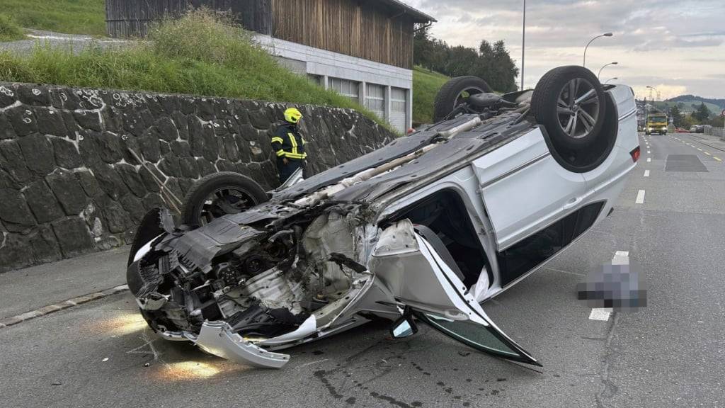 Auto landet in Küssnacht SZ auf dem Dach: Fahrerin verletzt