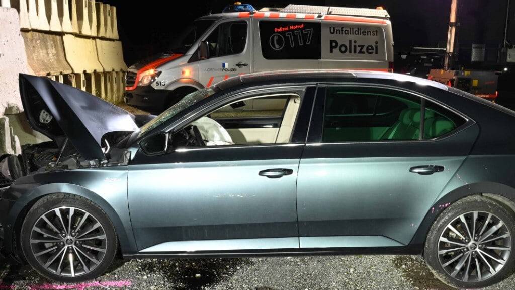 Der Selbstunfall des 32-jährigen Mannes passierte auf der Thorenbergstrasse, wie es hiess. Der Autofahrer kam frühmorgens mit seinem Auto von der Strasse ab und fuhr frontal in Betonelemente.