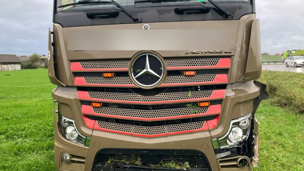 Der Sattelschlepper wurde beim «Ausflug» auf die grüne Wiese beschädigt.