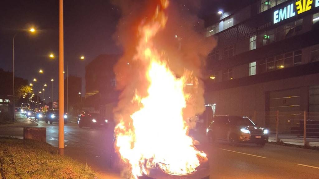 Auto brennt in der Stadt St. Gallen komplett aus