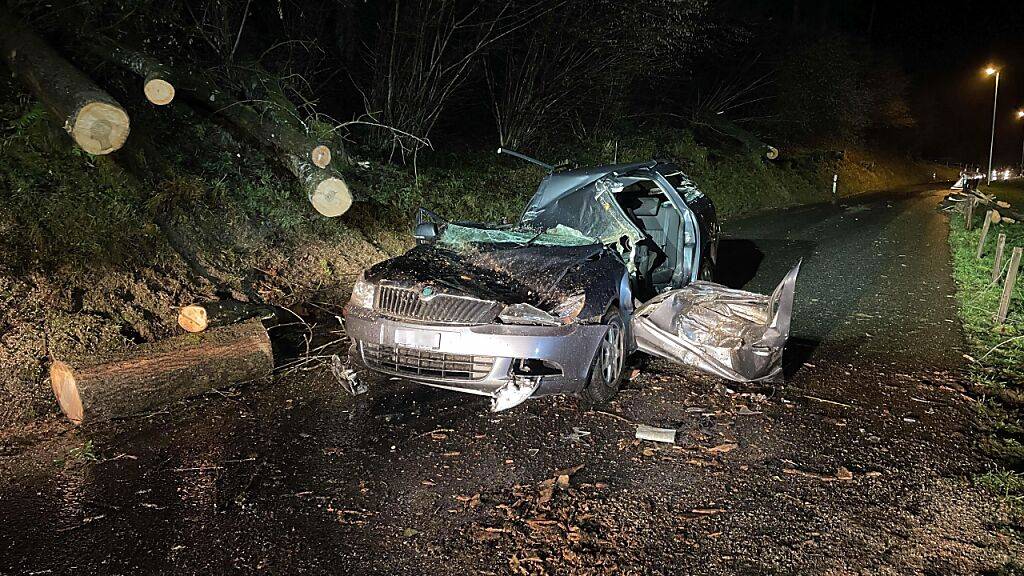 Er sei im Fahrzeug eingeklemmt worden und habe dabei erhebliche Verletzungen erlitten. Aus Sicherheitsgründen sei die betroffene Strasse bis am Samstagmorgen gesperrt worden, da noch weitere Bäume hätten gefällt werden müssen.