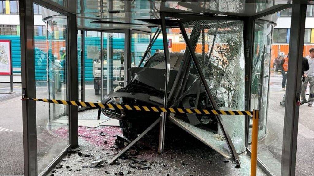 Der Unfallverursacher blieb unverletzt, wie die Stadtpolizei Lausanne mitteilte. Er konnte selbst aus seinem Fahrzeug aussteigen. Er verursachte einen erheblichen Schaden. Die Karusselltür zersplitterte beim Aufprall.
