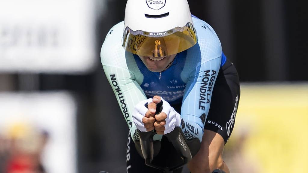 Remco Evenepoel, der am Sonntag im Klassiker Lüttich-Bastogne-Lüttich nicht mit Überflieger Tadej Pogacar mithalten konnte, musste sich auch auf den Strassen im Berner Jura geschlagen geben. Der Olympiasieger und Weltmeister im Zeitfahren, der diese Woche einen Etappensieg anstrebt, büsste als Achter etwas mehr als vier Sekunden auf die Bestzeit ein.