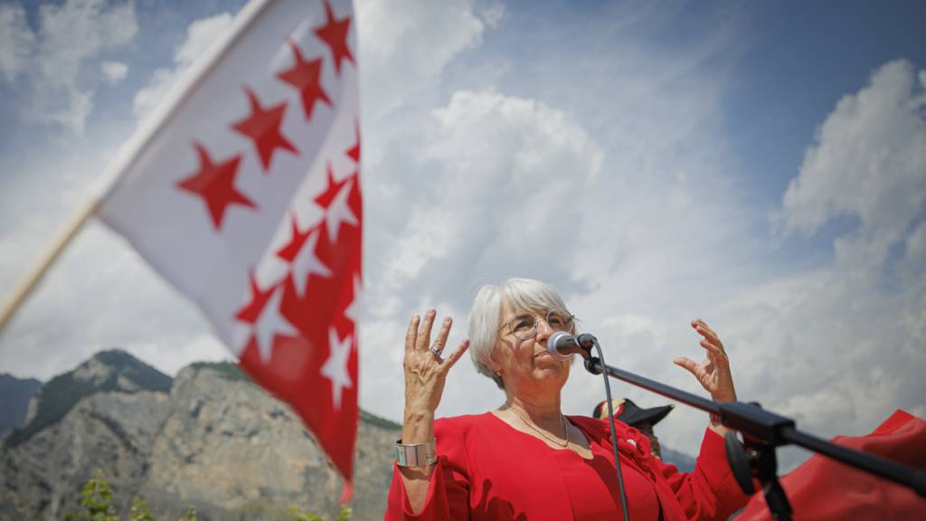 Bundesrätin Baume-Schneider sprach am Nationalfeiertag 2024 in Saint-Pierre-de-Clages VS. Einen Tag zuvor musste in Rorschach SG die Feier abgesagt werden. (Archivbild)