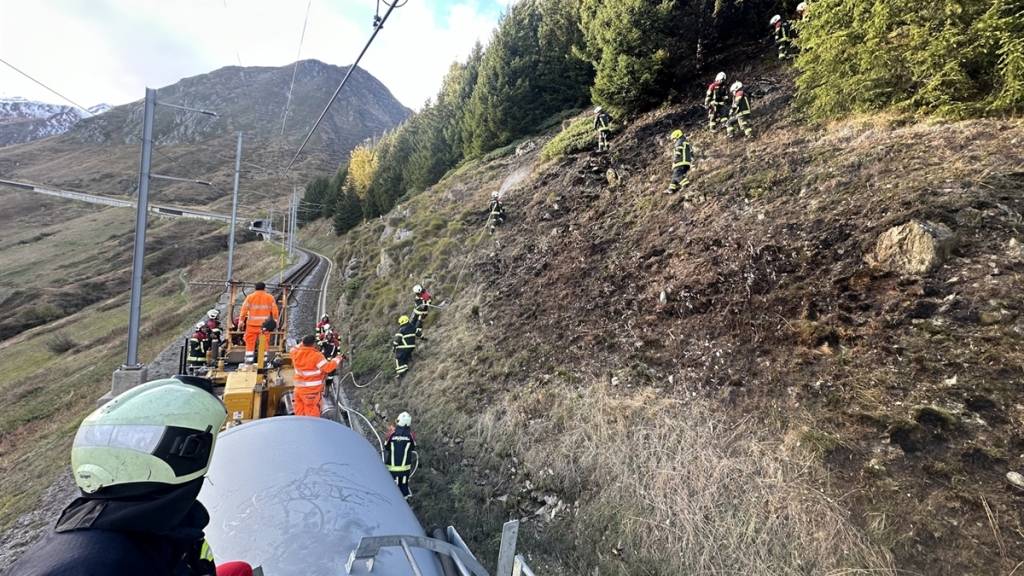 Sie löschten den Brand auf einer Fläche von rund 50 mal 20 Metern mit Unterstützung eines Löschzuges der Matterhorn Gotthard Bahn, wie es weiter hiess. Eine Ausbreitung des Feuers auf einen nahegelegenen Schutzwald habe so verhindert werden können.