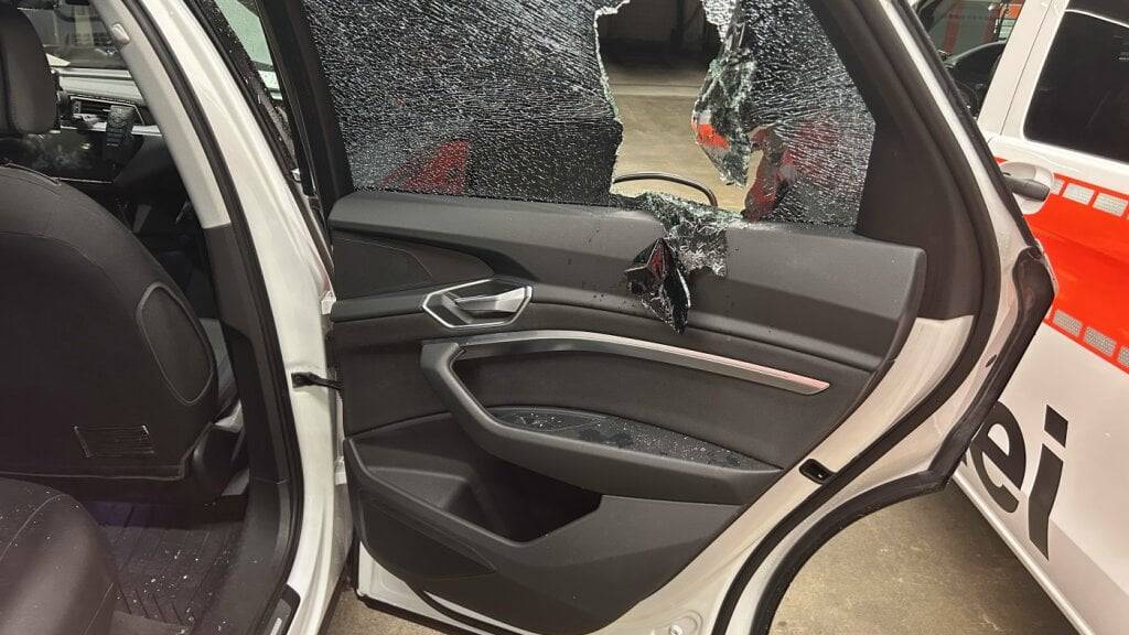 Kurz vor 18.30 Uhr rannten laut Mitteilung mehrere Personen, die FCZ-Fanjacken trugen, aus einer Seitengasse zum Auto und schlugen mit einem Nothammer darauf ein. Dabei zertrümmerten sie mehrere Scheiben.