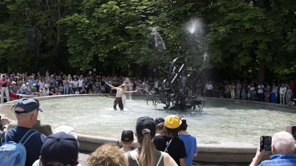 Die Parade hielt vor dem Jo-Siffert-Brunnen an. Dieses Kunstwerk hatte Tinguely zum Gedenken an seinen Formel-1-Pilotenfreund geschaffen. (Archivbild)