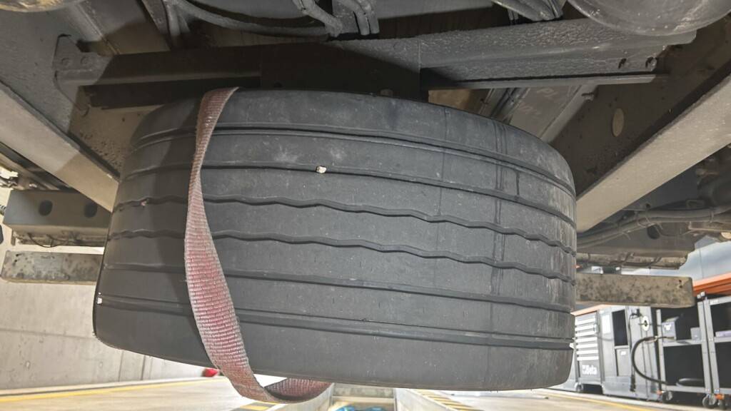 Zudem fand die Polizei ein nicht korrekt befestigtes, defektes Rad an der Reserveradhalterung unter dem Anhänger, das herunterzufallen drohte. Offenbar hatte der Chauffeur zuvor dieses Rad ausgewechselt. Dabei montierte er das für die Lenkachse vorgesehene Ersatzrad am Anhänger.