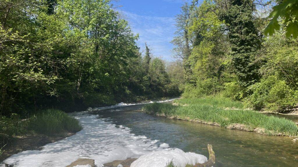Schaum verschmutzt Fluss Ergolz bei Füllinsdorf BL