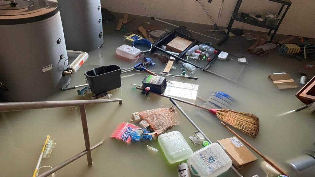 Eine Transportleitung der Wasserversorgung barst und spülte mehrere tausend Kubikmeter Trinkwasser mit Schutt und Kies auf die Strassen. Die Berufsfeuerwehr konnte die Wasserleitung laut Mitteilung rasch schliessen und den Wasseraustritt stoppen.
