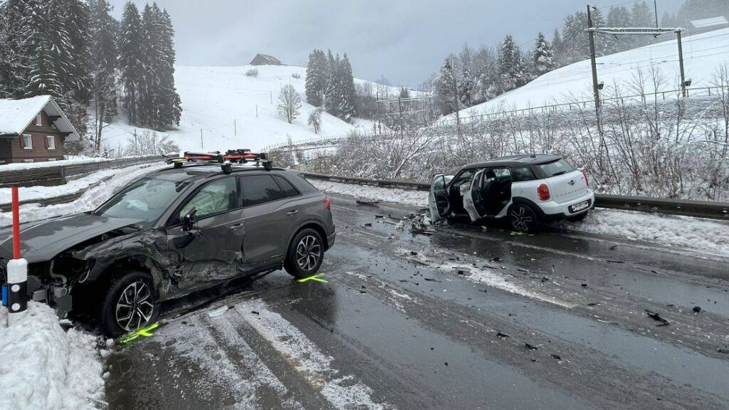 Der Autolenker und sein Beifahrer waren auf der Kantonsstrasse Richtung Biberbrugg SZ unterwegs. In einer langgezogenen Linkskurve sei der 46-Jährige auf der teilweise vereisten Fahrbahn ins Schleudern geraten. Dadurch sei er von seiner Fahrbahn abgekommen und mit einem entgegenkommenden Personenwagen kollidiert, teilte die Kantonspolizei Schwyz mit. An beiden Fahrzeugen entstand Totalschaden.