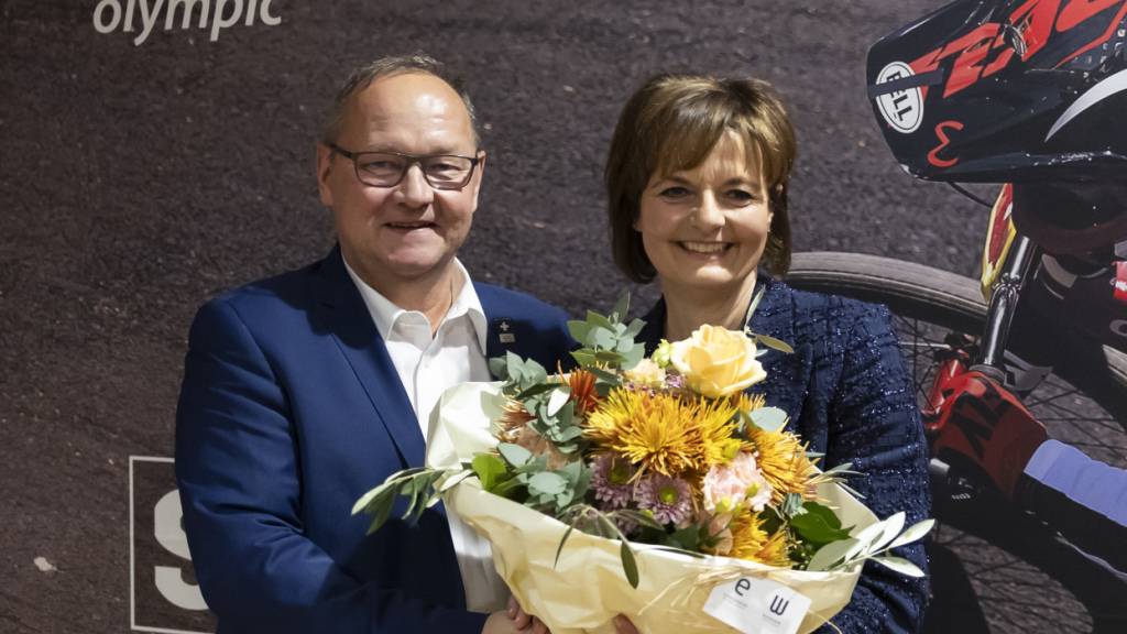 Jürg Stahl, der scheidende Präsident von Swiss Olympic, und dessen Nachfolgerin Ruth Metzler-Arnold (im Bild nach der Wahl der neuen Präsidentin) können sich über einen üppigen finanziellen Zuschuss freuen