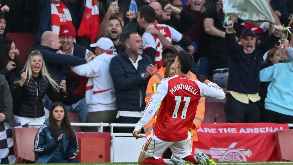 Diesem Gegentor rannte Arsenal lange hinterher - und die Nachspielzeit war längst angebrochen, als Gabriel Martinelli das Arsenal-Stadion sprichwörtlich zum Explodieren brachte. Mit einem feinen Heber bezwang der Brasilianer Gigi Donnarumma im Tor Manchesters zum 1:1.