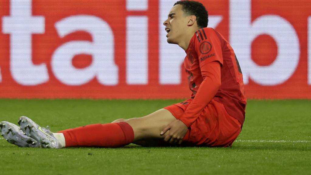 Jamal Musiala verletzt sich am Freitag beim Sieg in Augsburg am linken hinteren Oberschenkel