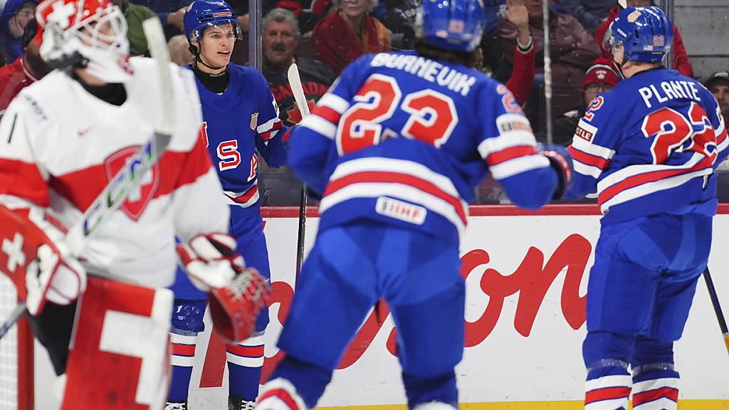 Die Schweizer Eishockey-Junioren bleiben an der U20-WM in Kanada im Viertelfinal chancenlos. Die US-Boys sind bei der 2:7-Klatsche mehr als eine Nummer zu gross.