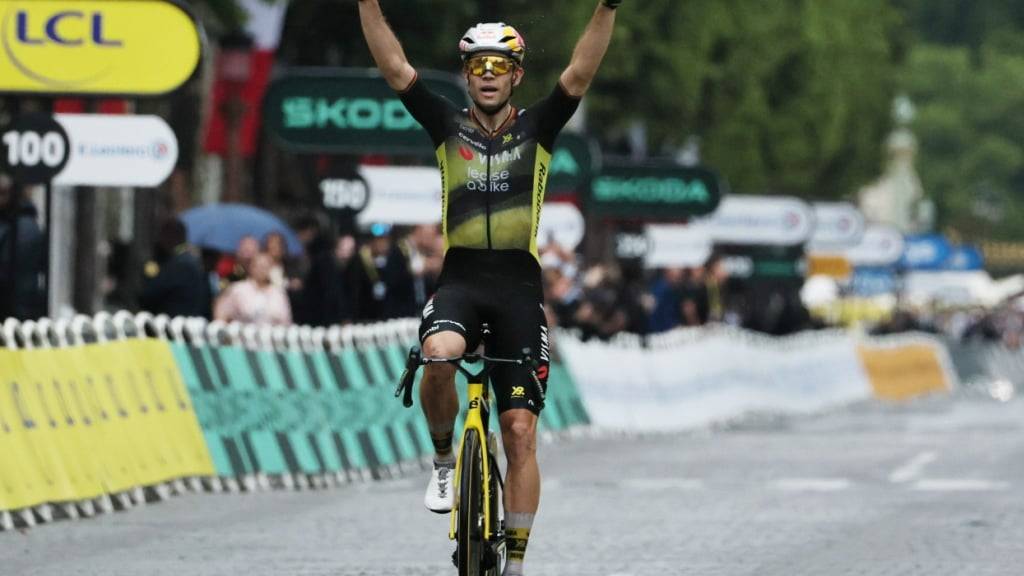 Van Aert lässt sich auf der Zielgeraden auf den Champs-Élysées feiern